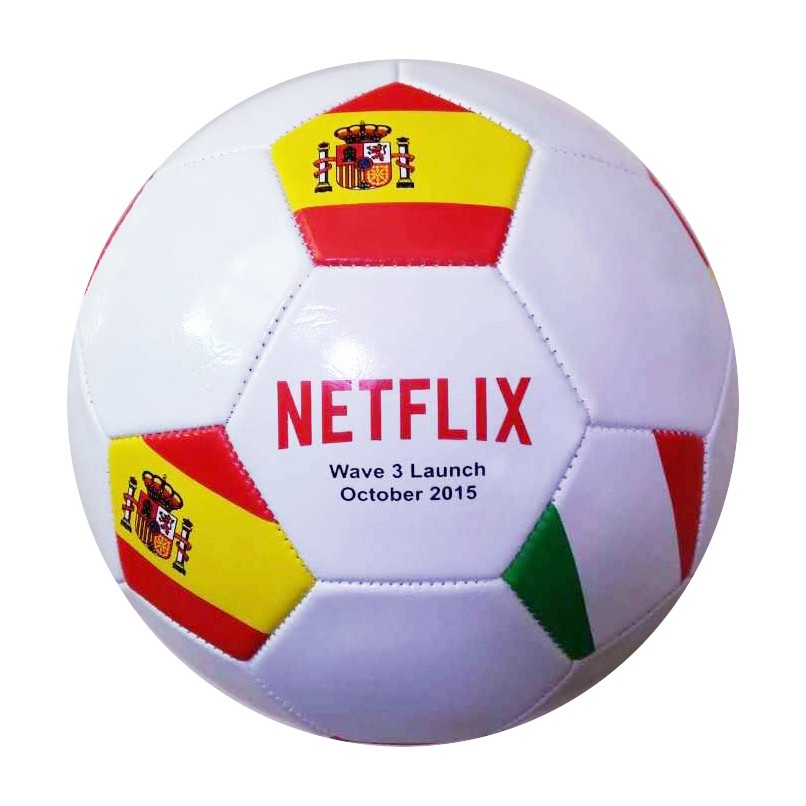 Official size custom soccer ball 8.5". Made from PVC, machine sewn - 2 Ply 300 Gram 32-Panels, Promotional great for game play and giveaways.